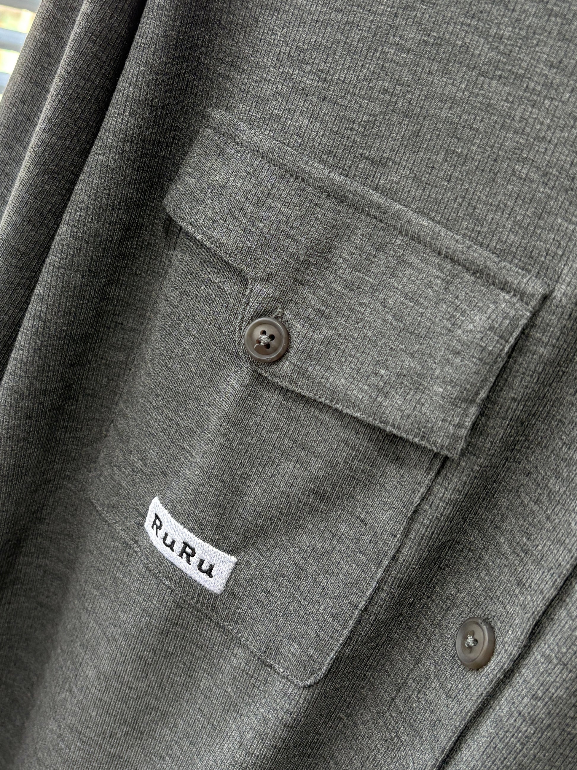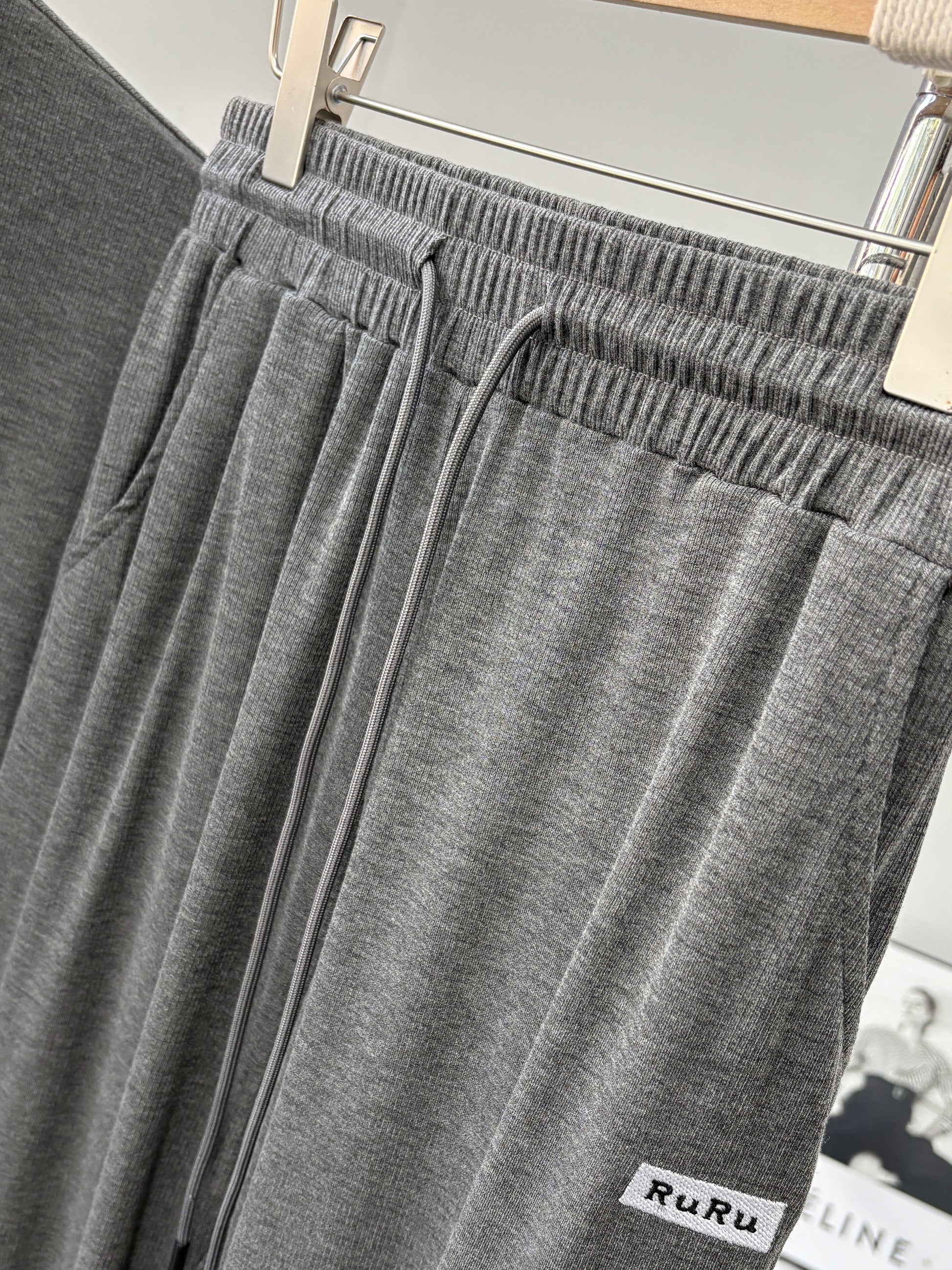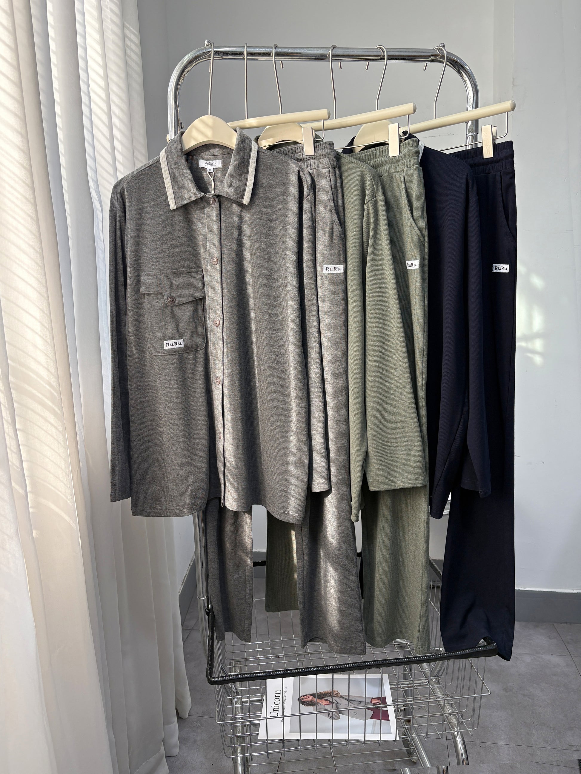 The button-up top features a clean shirt collar, functional chest pocket, and subtle RuRu label detailing. Paired with relaxed straight-leg pants with an elastic waistband, this set is designed to move with you through the day — from quiet mornings to slow evenings at home.