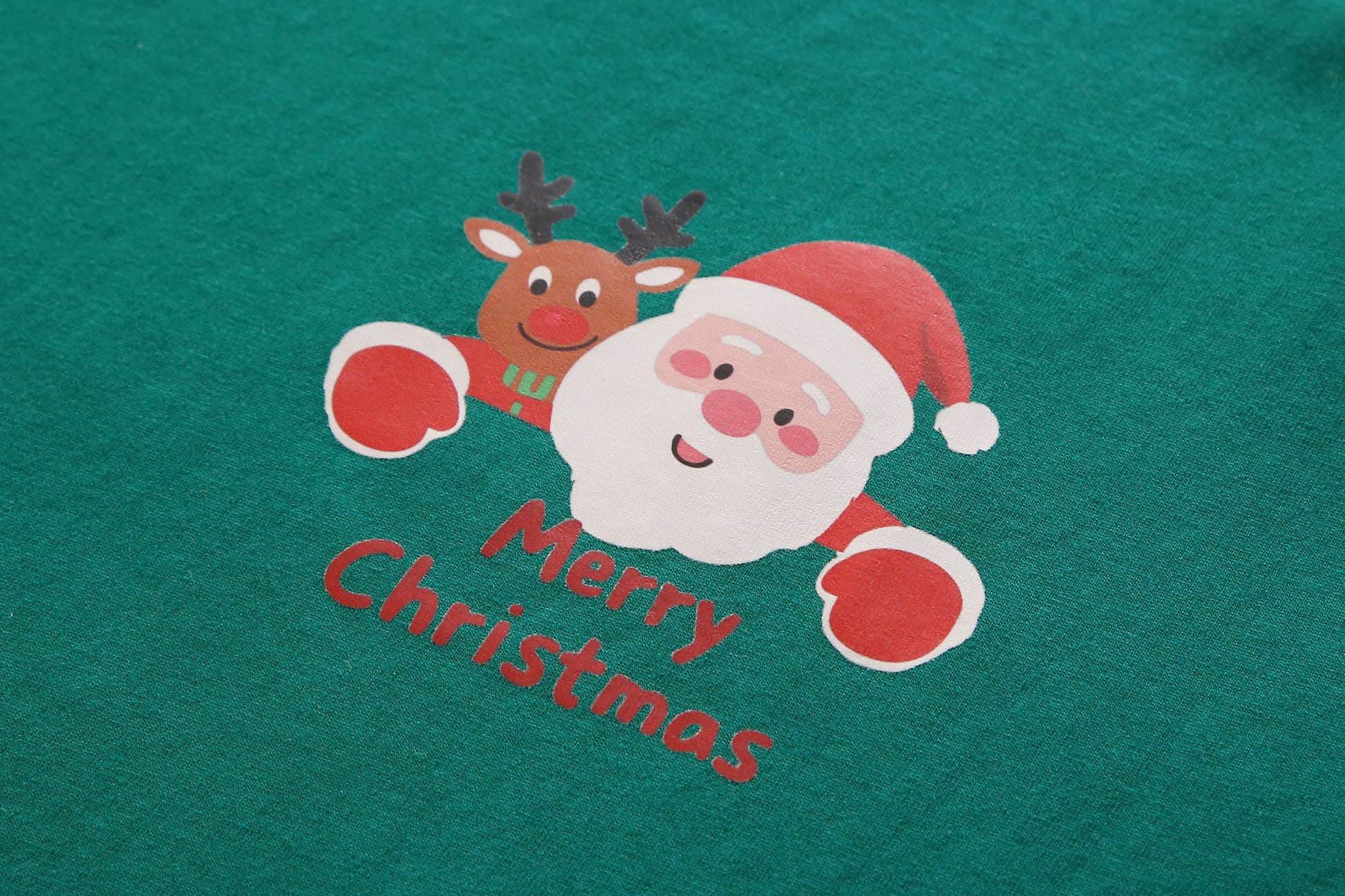 Featuring a jolly Santa and reindeer print on the top and playful red Christmas patterned pants, it’s perfect for family matching moments and holiday photos.